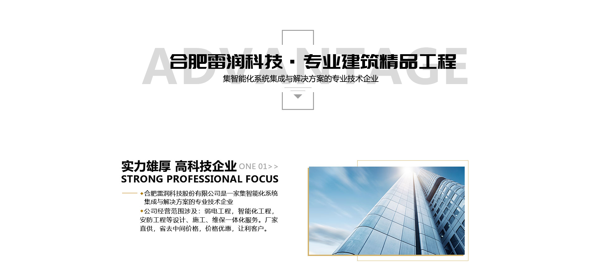 合肥雷潤科技股份有限公司成立于2014年,經(jīng)過多年的蓄勢發(fā)展,已成為行業(yè)內(nèi)頗具影響力的智能化系統(tǒng)集成與解決方案的技術(shù)企業(yè)。公司經(jīng)營范圍涉及:建筑智能化系統(tǒng)、綜合布線、安全技術(shù)防范系統(tǒng)、車牌識別系統(tǒng)、門禁控制系統(tǒng)、廣播會議多媒體、計算機(jī)網(wǎng)絡(luò)、應(yīng)用軟件定制開發(fā)、機(jī)房工程、多媒體展廳、LED屏信息發(fā)布系統(tǒng)等的設(shè)計、施工、維保一體化服務(wù)。同時代理經(jīng)銷各類電子電氣產(chǎn)品。我們與國內(nèi)外眾多品牌供應(yīng)商建立了良好、穩(wěn)固的合作伙伴關(guān)系(如:海康威視、天地偉業(yè)、IBM、華為、H3C、銳捷、APC、康普、Honeywell、R&M、BOSCH、捷順、HID、TOA、迪士普、SAMSUNG等)。為單位、醫(yī)院、學(xué)校、國企、外企、房產(chǎn)物業(yè)等客戶提供的系統(tǒng)集成和產(chǎn)品技術(shù)服務(wù),并獲得用戶好評。 我們擁有一支朝氣蓬勃技術(shù)的團(tuán)隊,現(xiàn)有本科學(xué)歷以上員工占總?cè)藬?shù)的80%,并且擁有12名中工程師、7名注冊建造師、各類技術(shù)資質(zhì)工程師15名。具備的技術(shù)力量和的實施團(tuán)隊。我們始終秉承I...